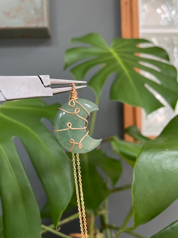 Green Aventurine Gold Moon Necklace