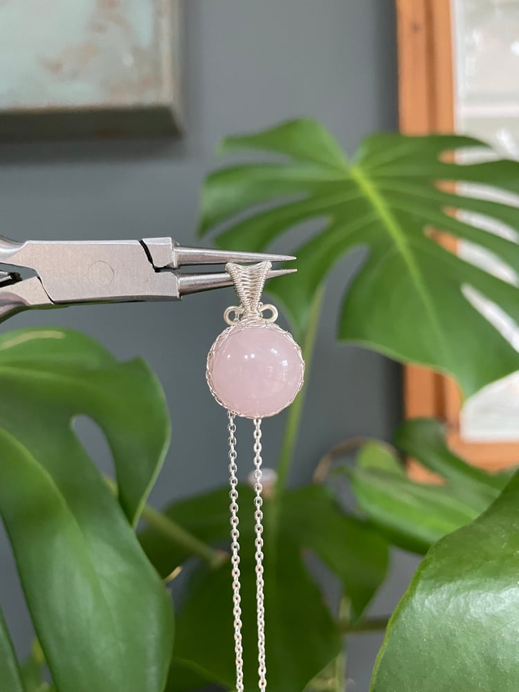 Silver Rose Quartz Sphere Crystal Necklace