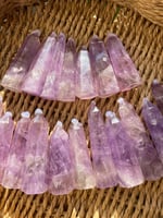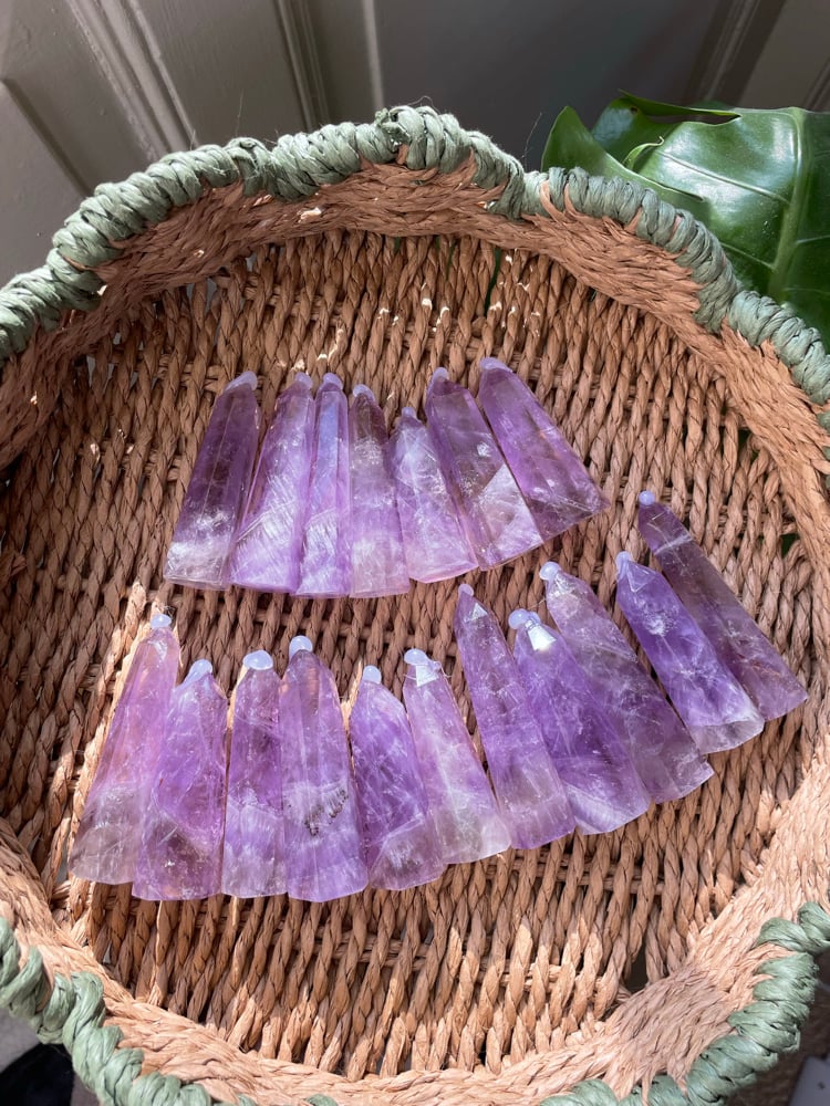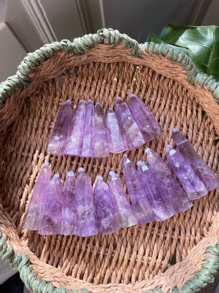 In tower form, these crystals are thought to direct and amplify energy upward, making them ideal for intention-setting, meditation, or bringing a sense of clarity and flow into your space. Ametrine is also linked to balance and transformation, helping to clear stagnant energy while promoting a steady, centred mindset.