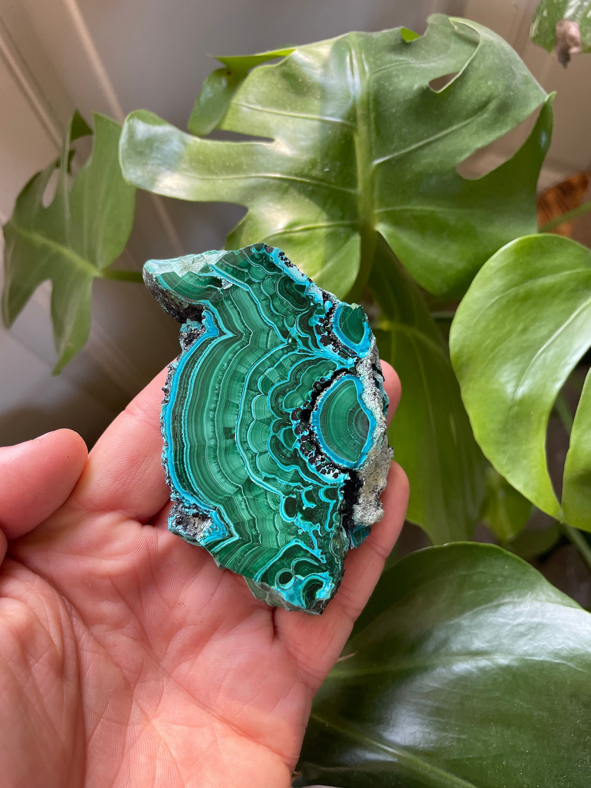 How stunning is this vibrant chrysocolla and malachite piece – this one is 260g.