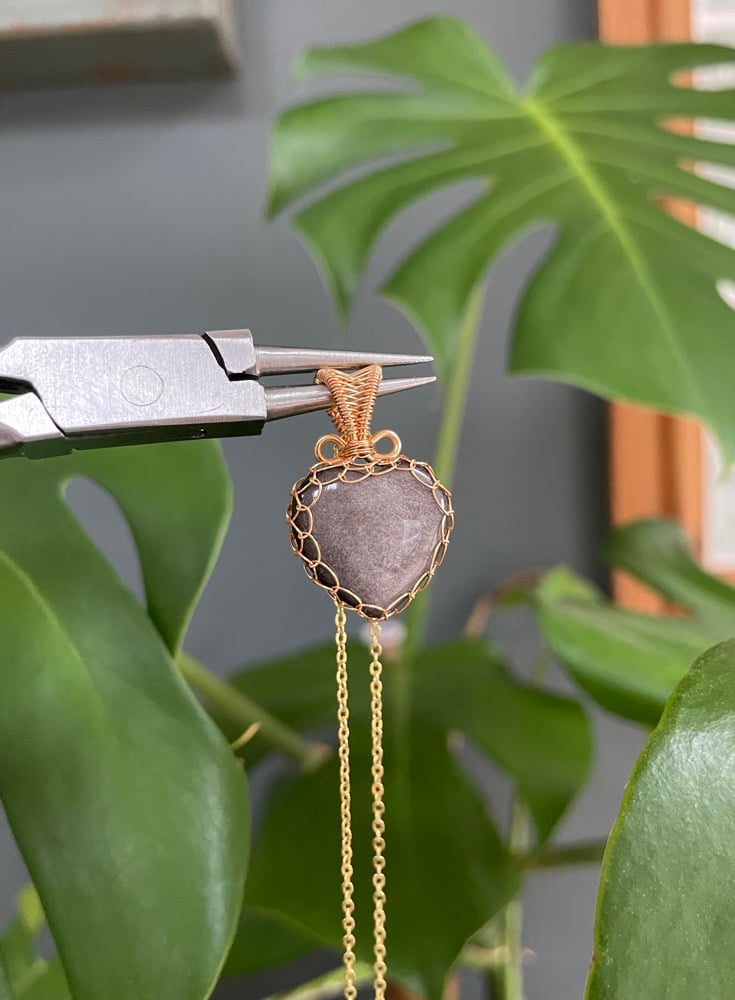 Gold Silver Sheen Obsidian Heart Crystal Necklace