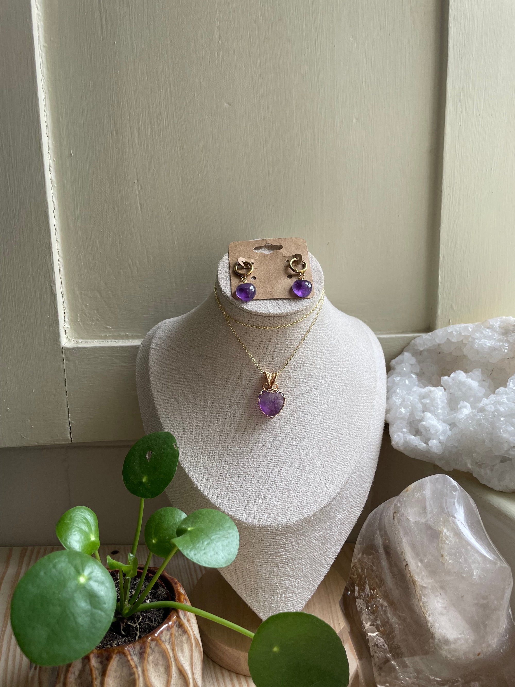 Gold Amethyst Heart Jewellery Set
