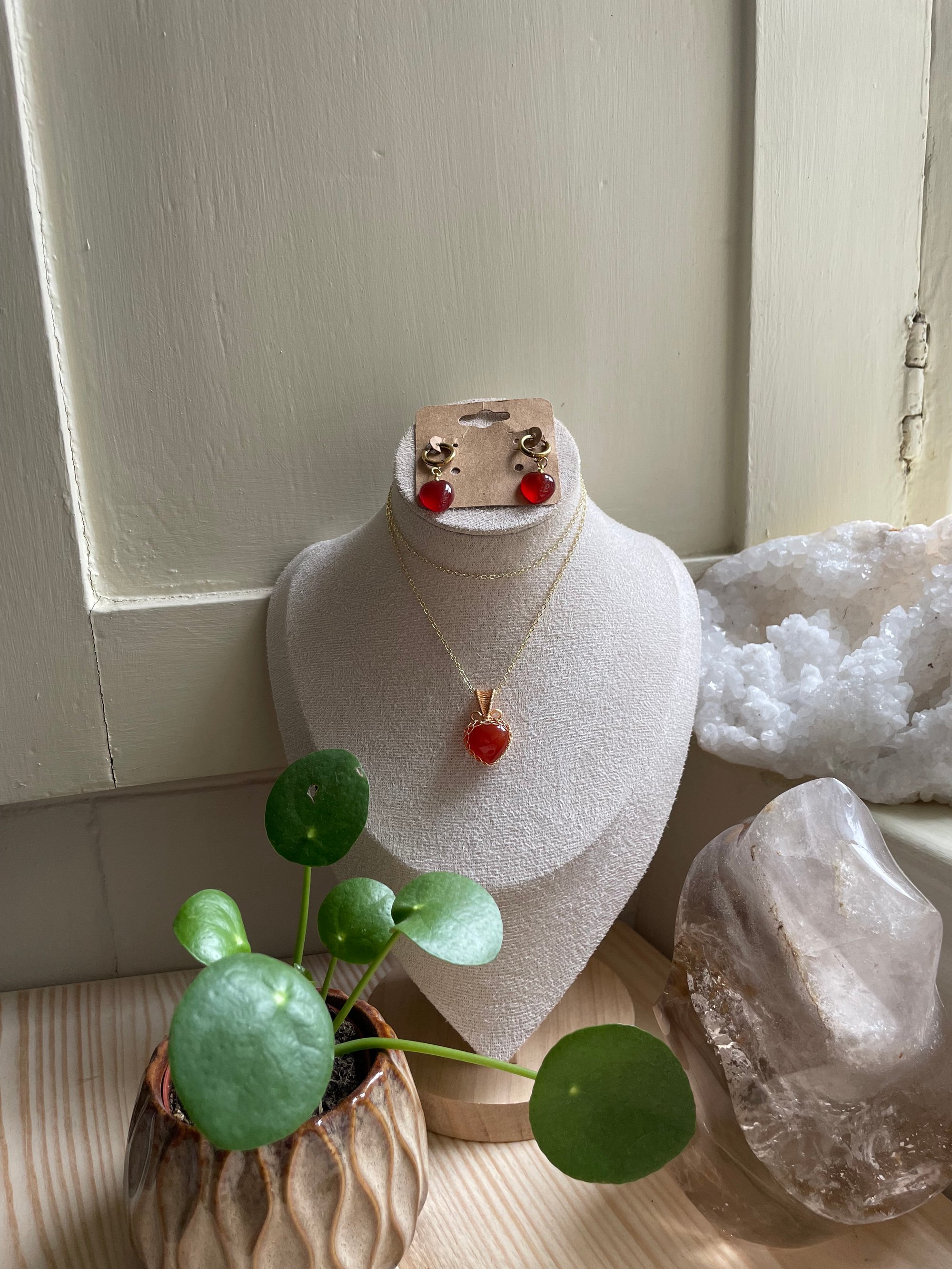 Gold Carnelian Heart Jewellery Set