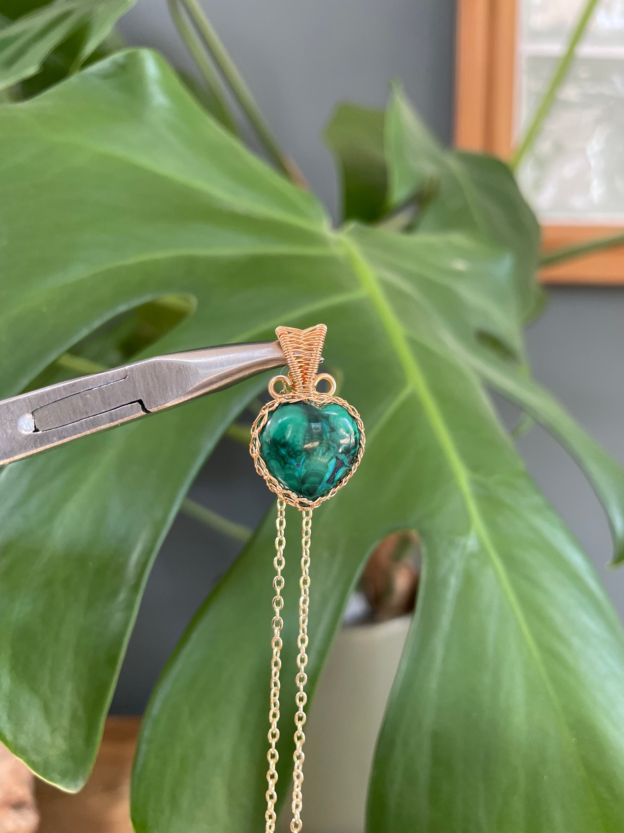 Gold Chrysocholla & Malachite Heart Crystal Necklace
