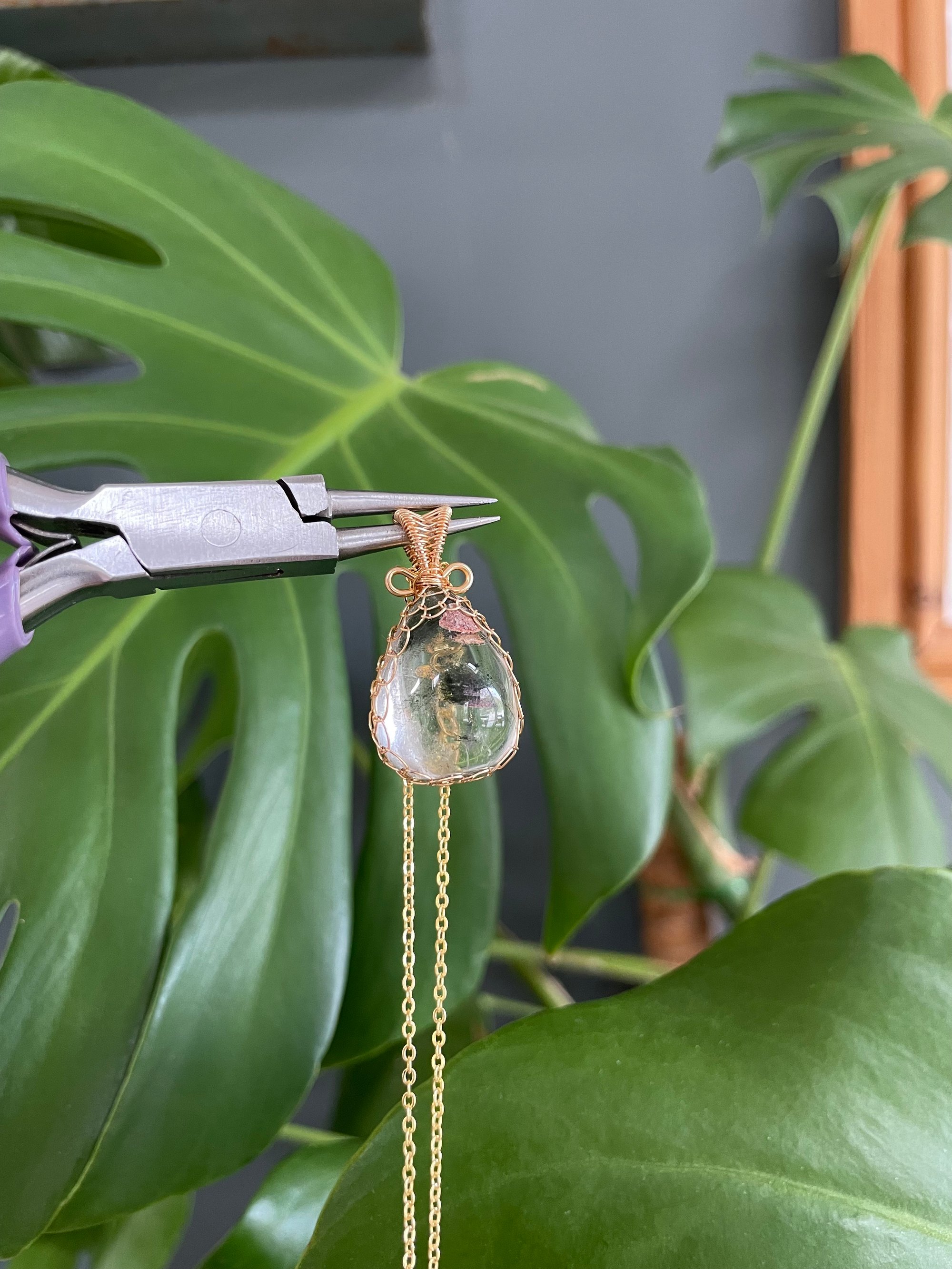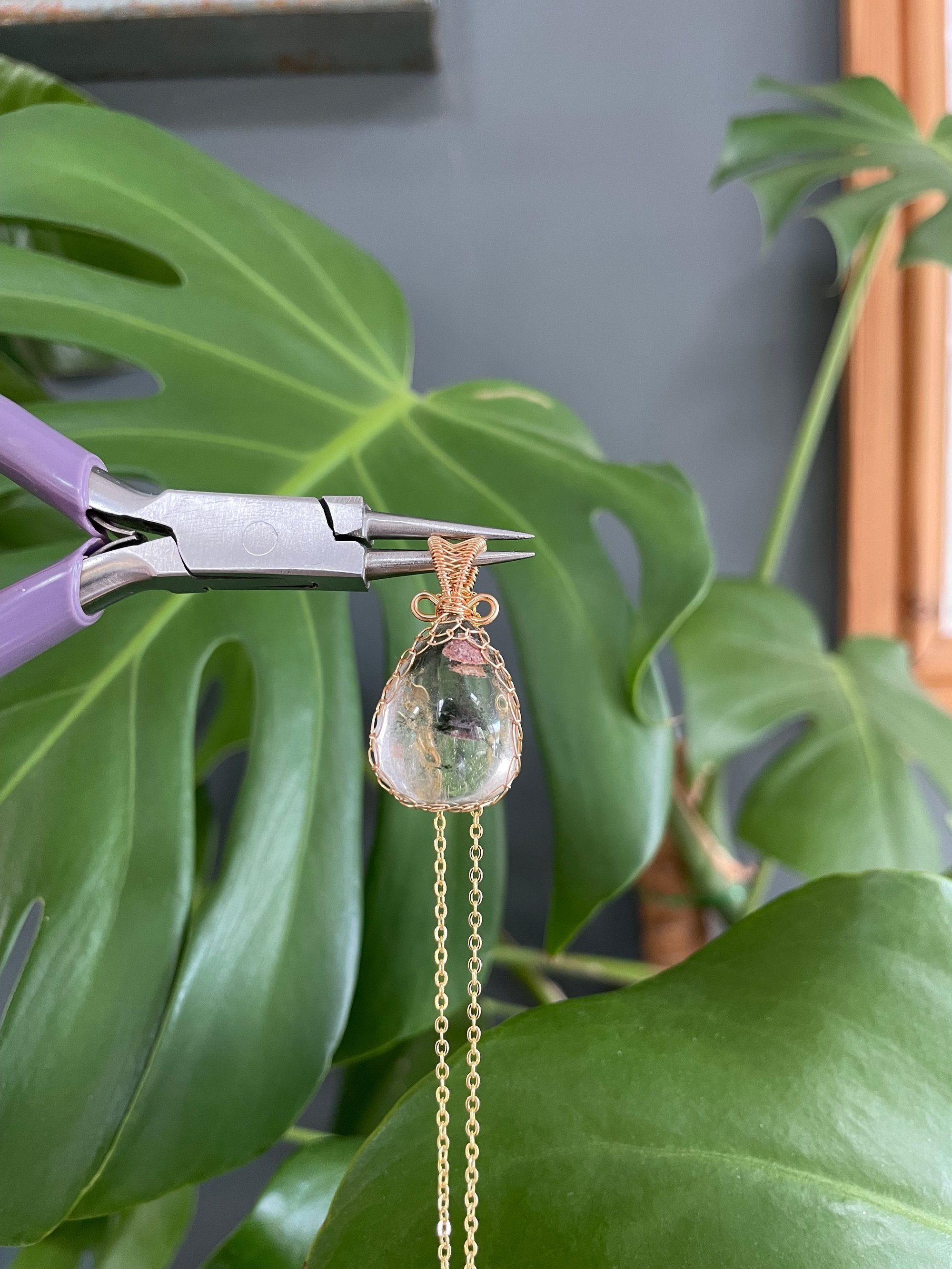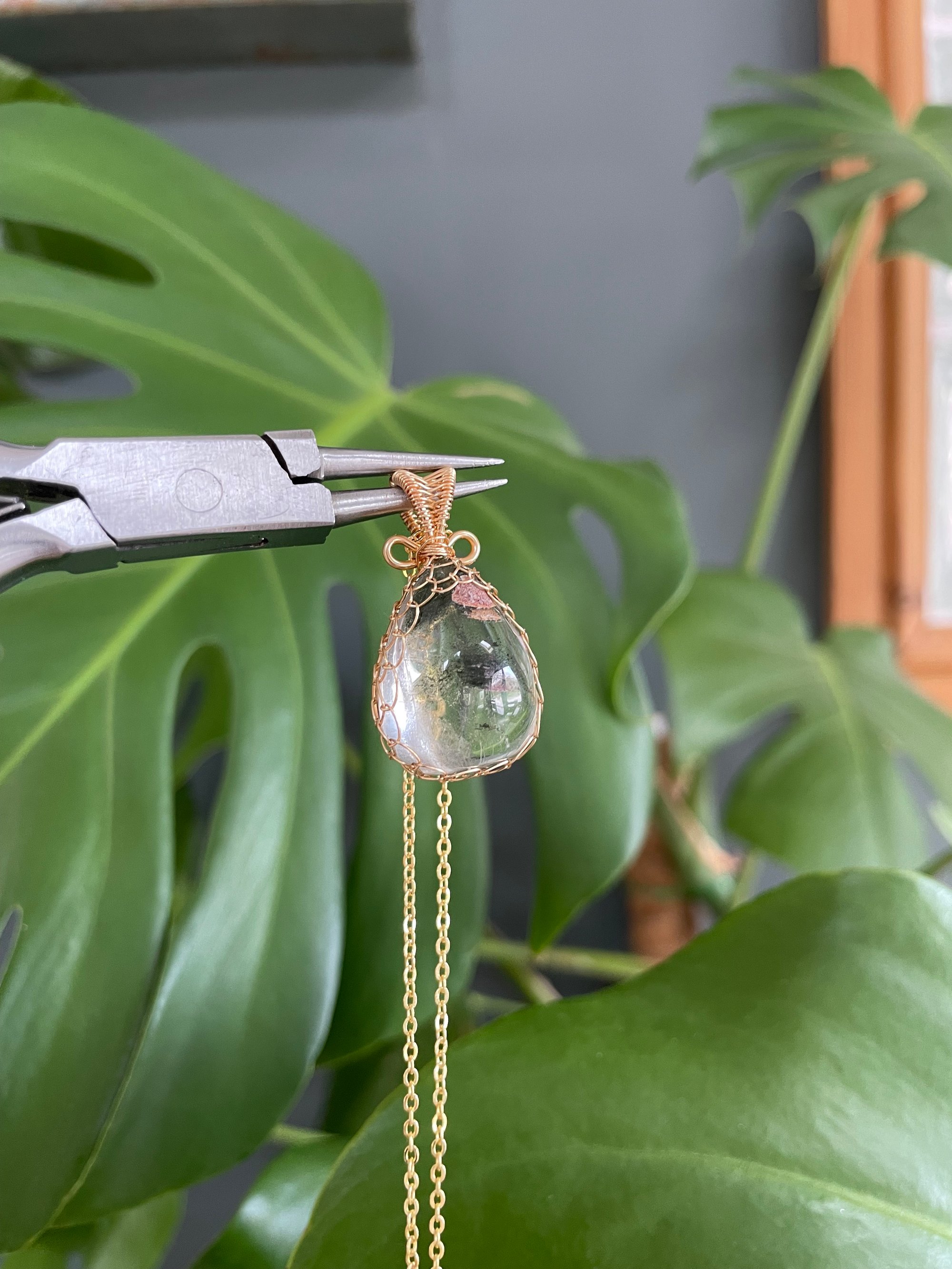 Gold Garden Quartz Teardrop Crystal Necklace