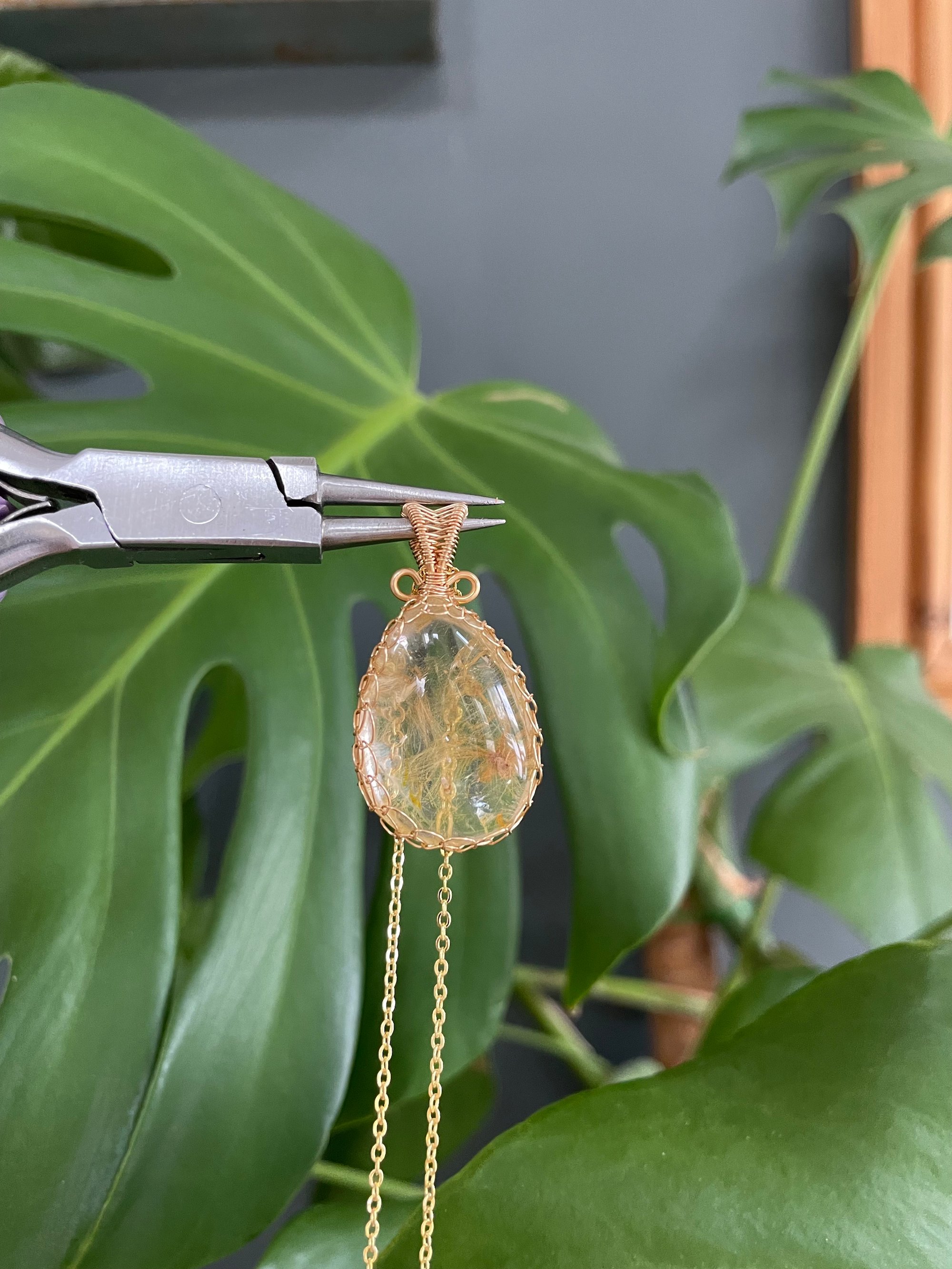 Gold Golden Rutile Teardrop Crystal Necklace