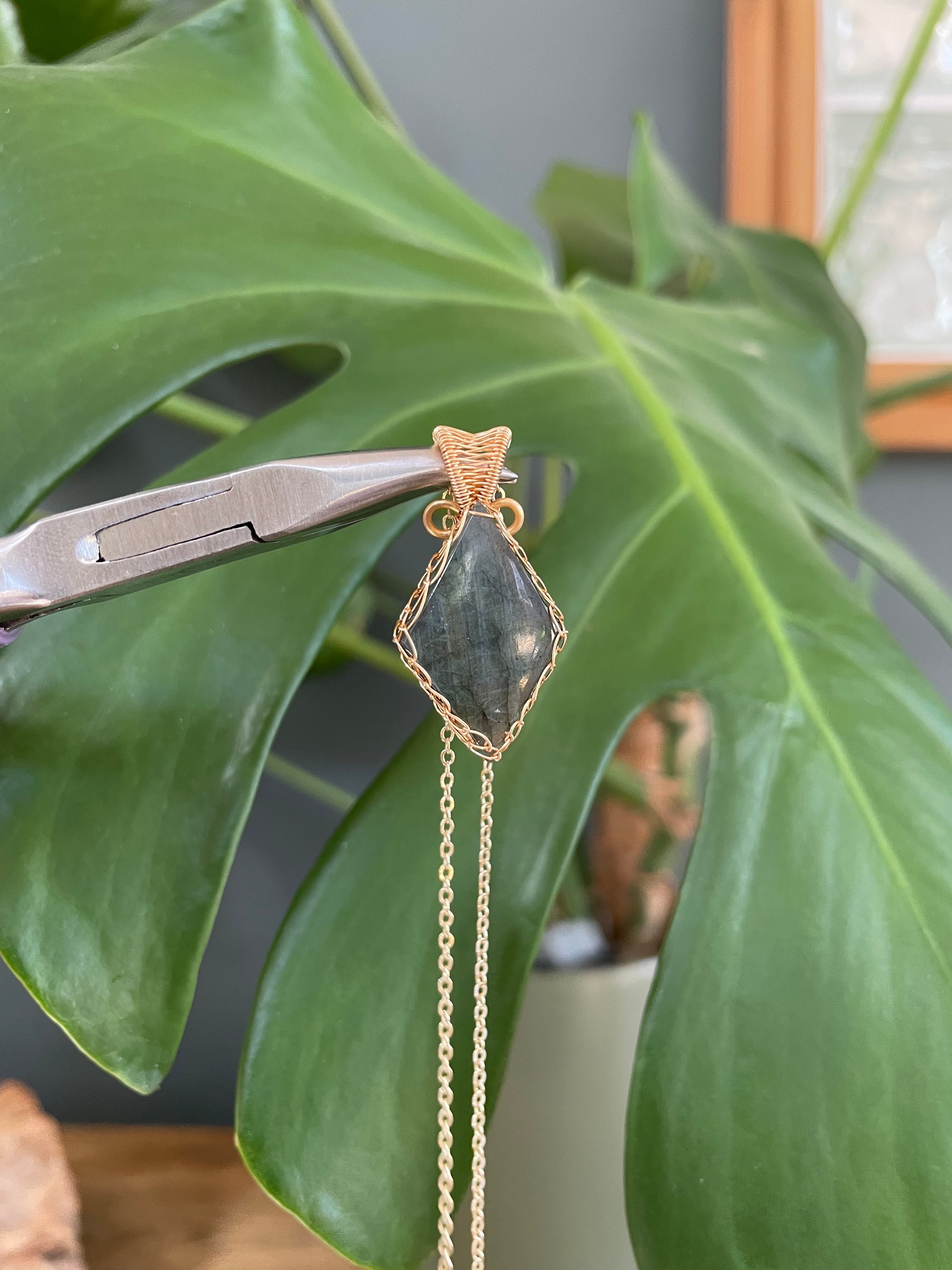 Gold Labradorite Diamond Crystal Necklace