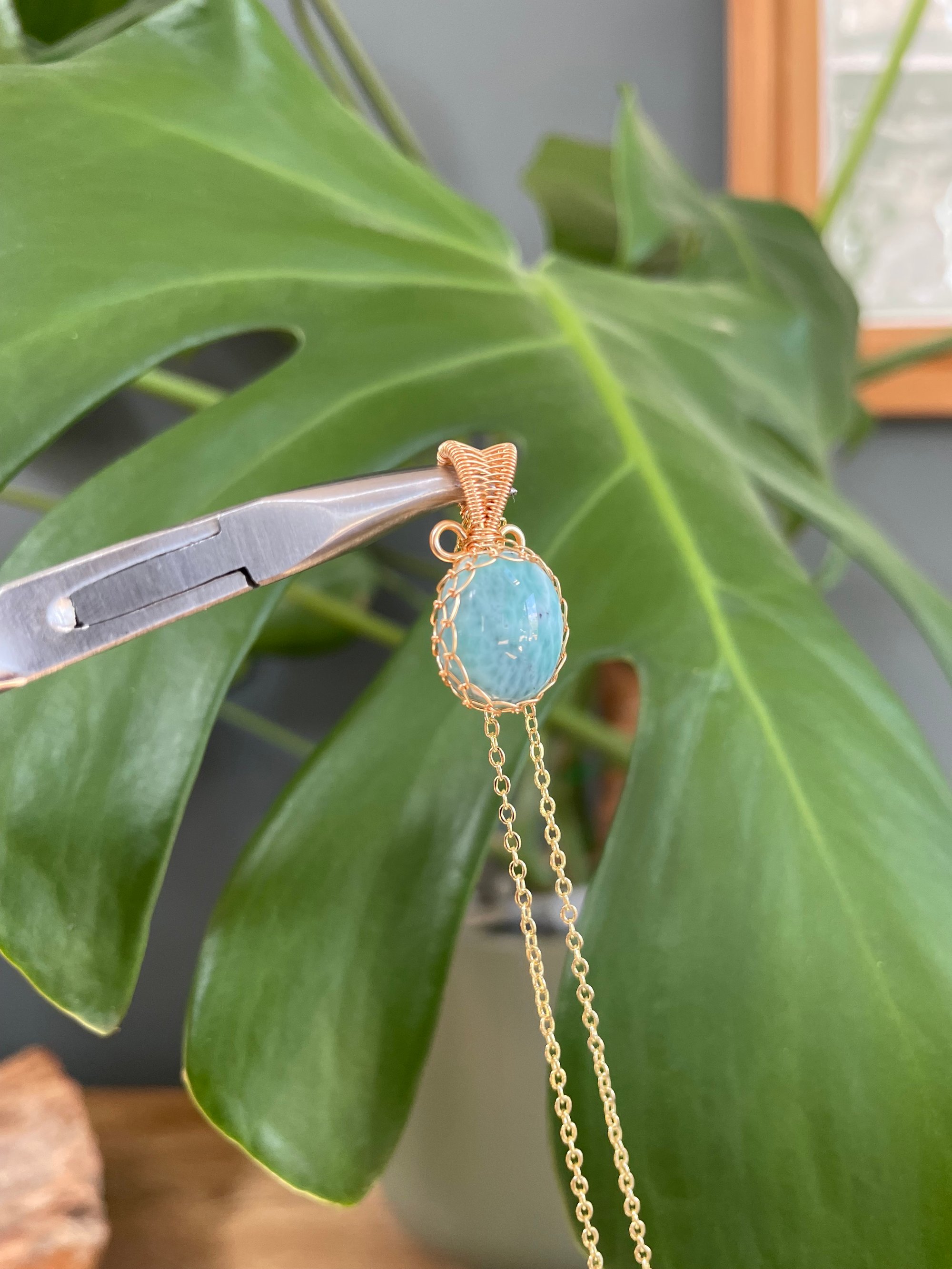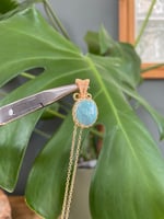Gold Larimar Oval Coin Crystal Necklace