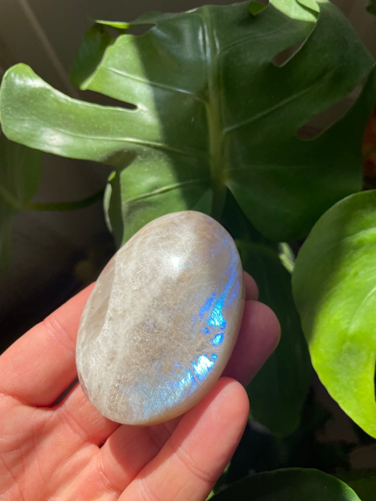 How soothing are these moonstone palm crystals - softly glowing with a gentle, luminous sheen that feels as calming as it looks.