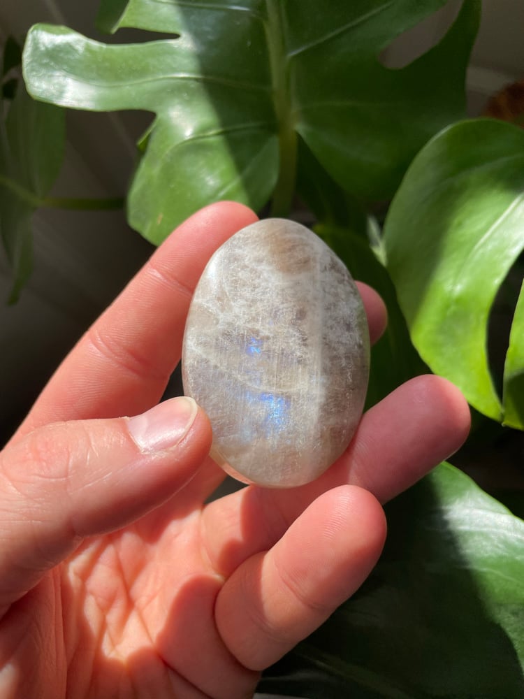 How soothing are these moonstone palm crystals - softly glowing with a gentle, luminous sheen that feels as calming as it looks.