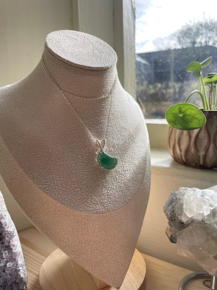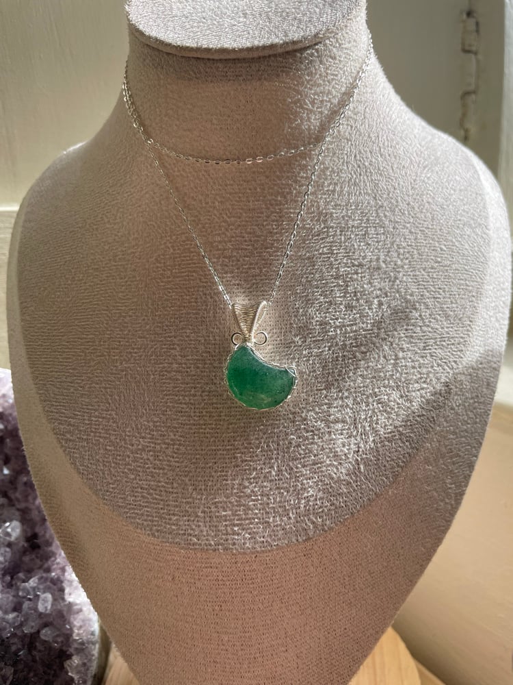 Silver Green Strawberry Quartz Moon Crystal Necklace