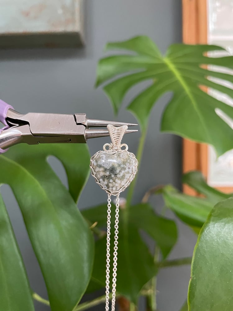 Silver Ocean Jasper Heart Crystal Necklace