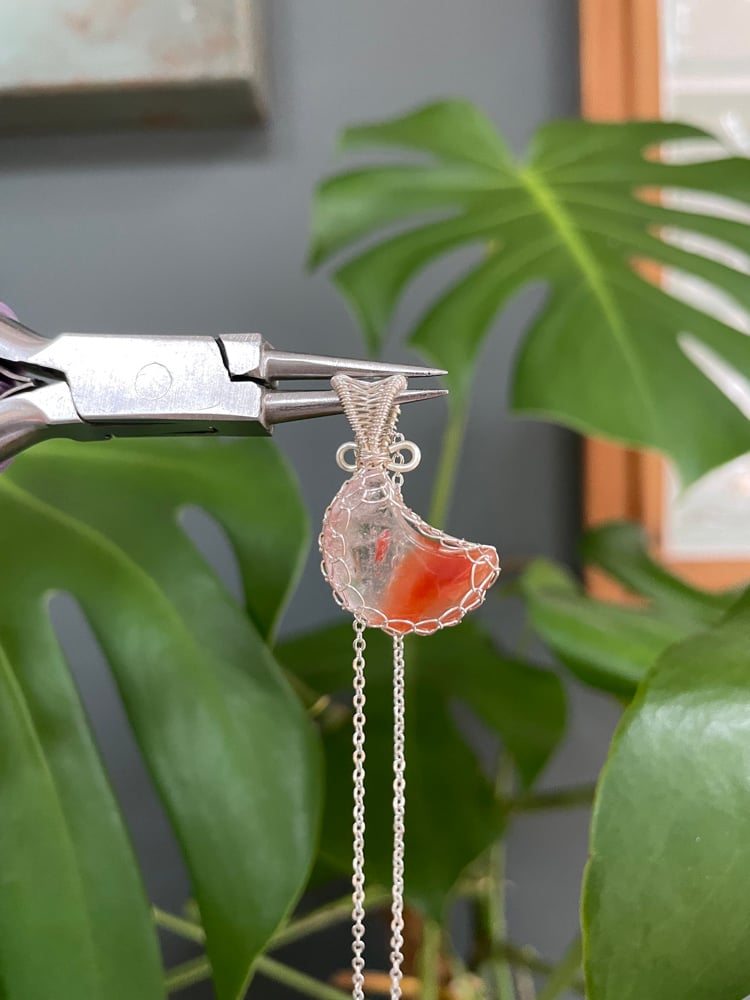 Silver Ombré Fire Quartz Moon Crystal Necklace