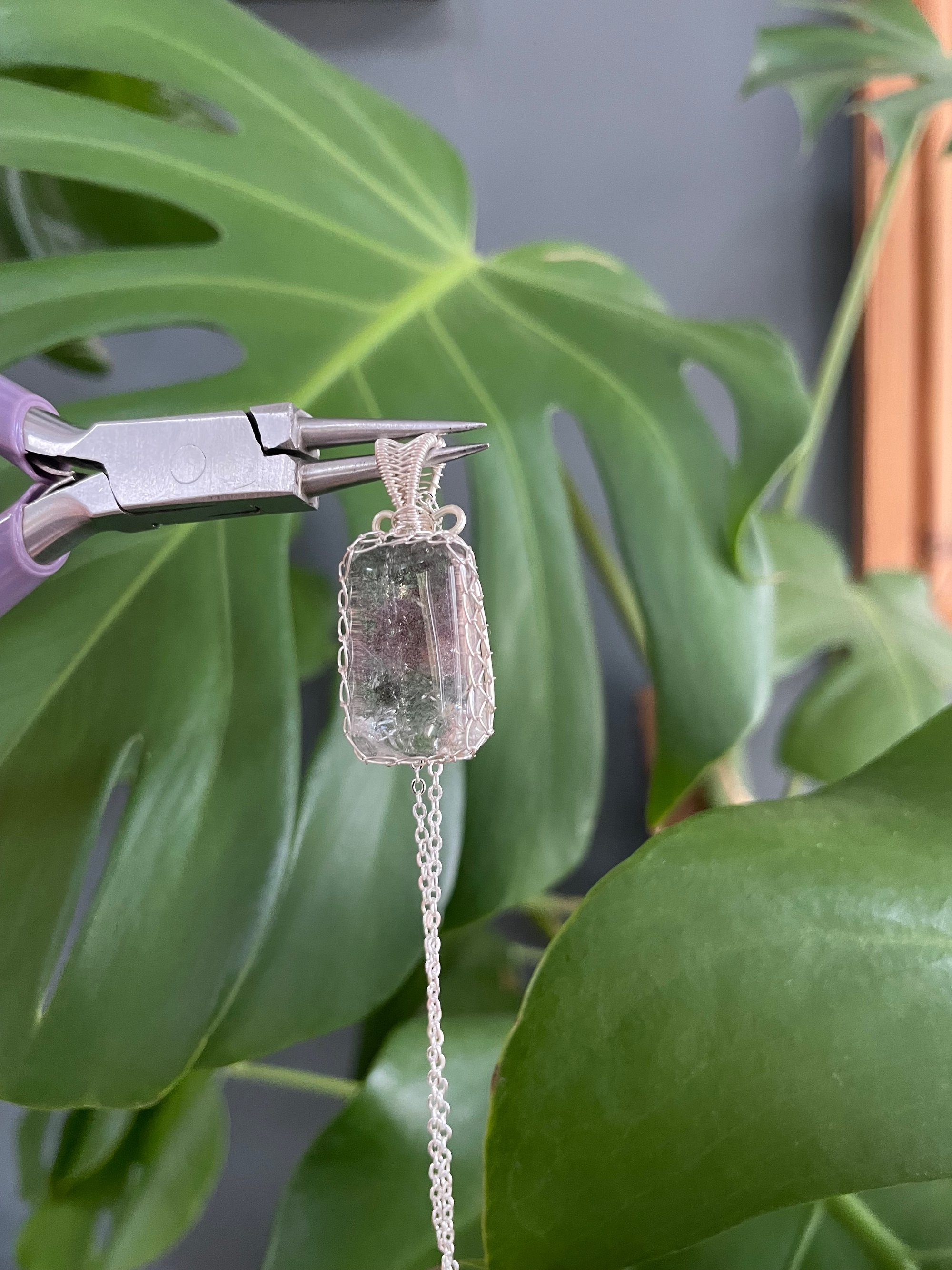 Silver Garden Quartz Rectangle Crystal Necklace