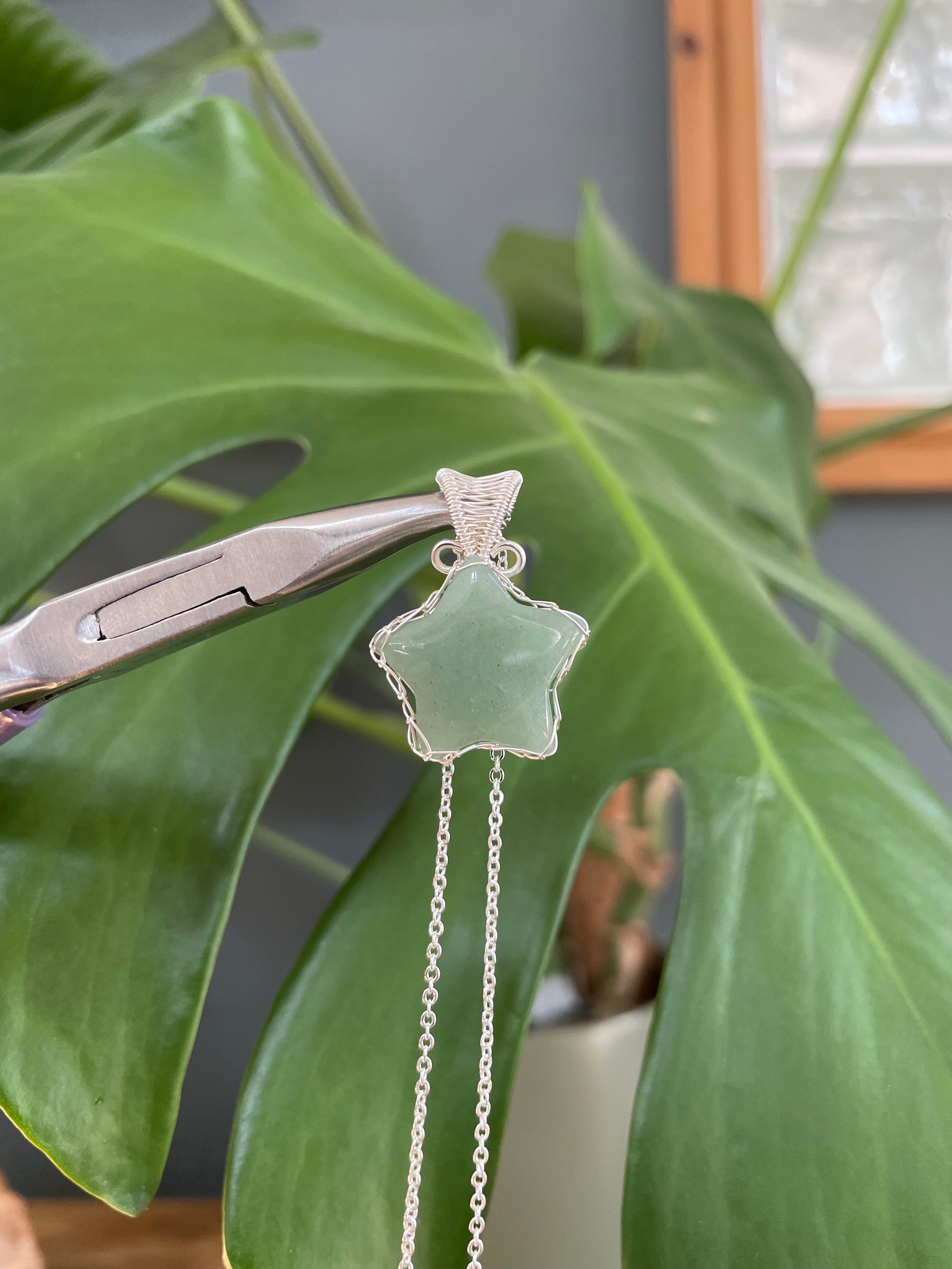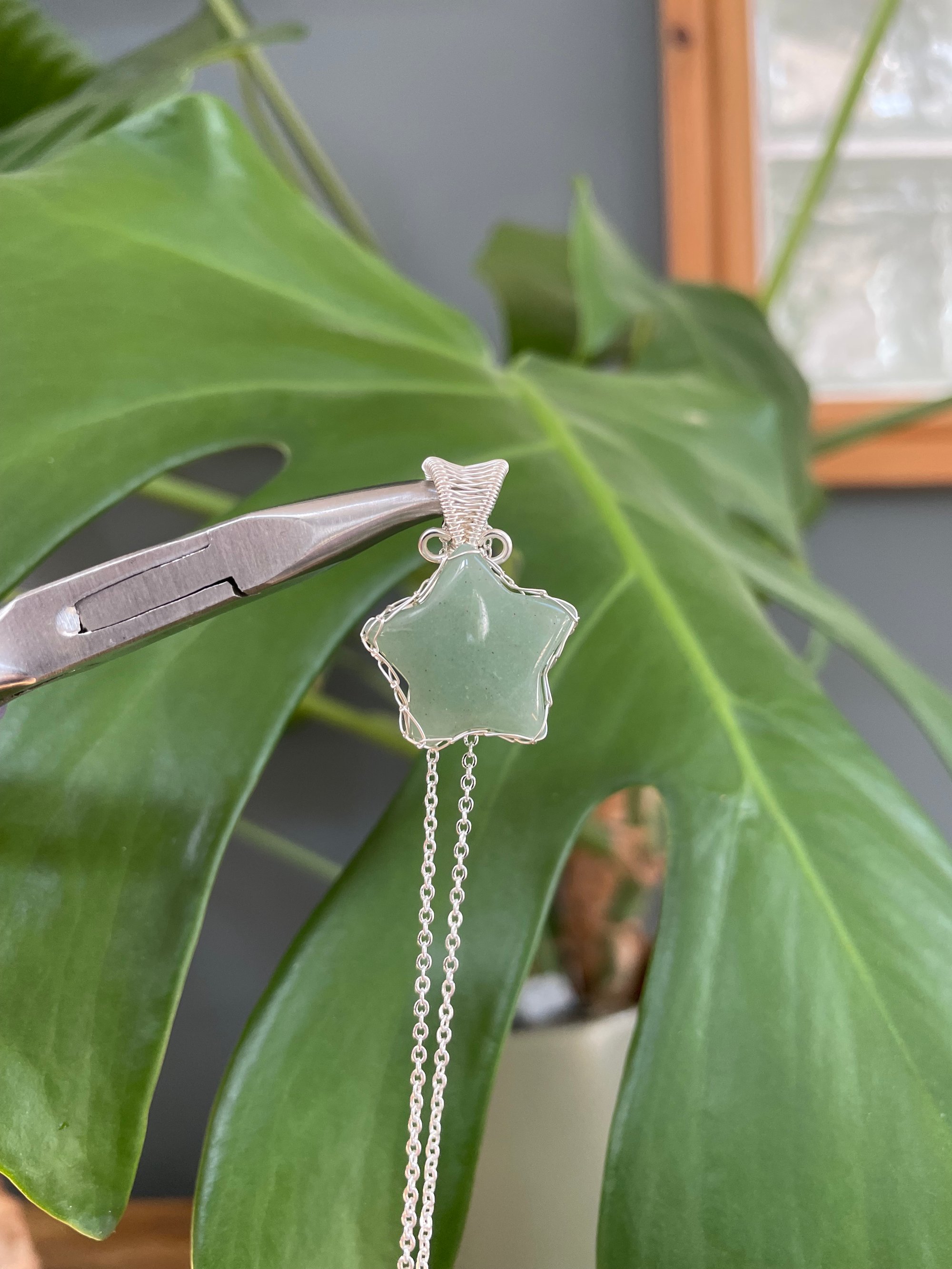 Silver Green Aventurine Star Crystal Necklace