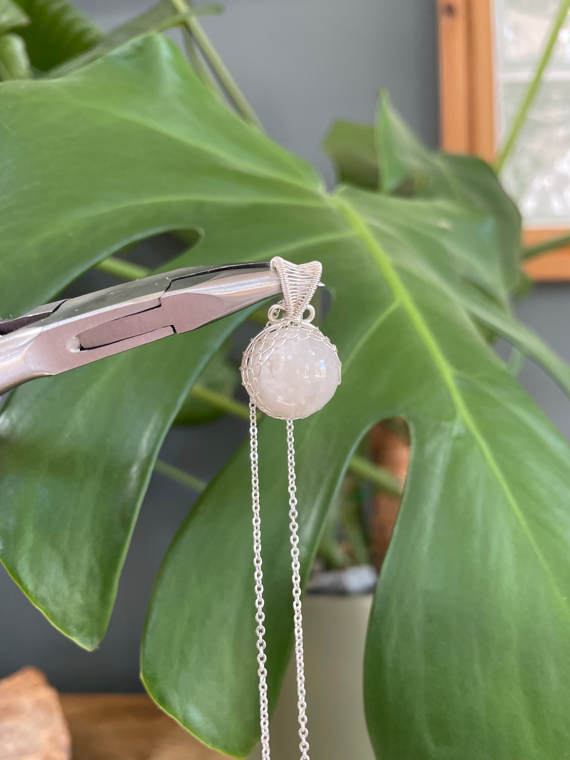 Silver Moonstone Sphere Crystal Necklace 2