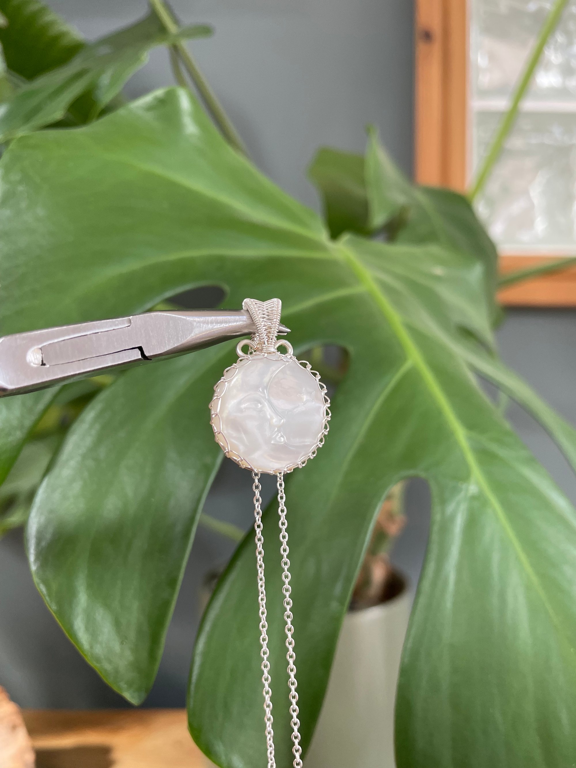 Silver White Mother Of Pearl Coin Crystal Necklace